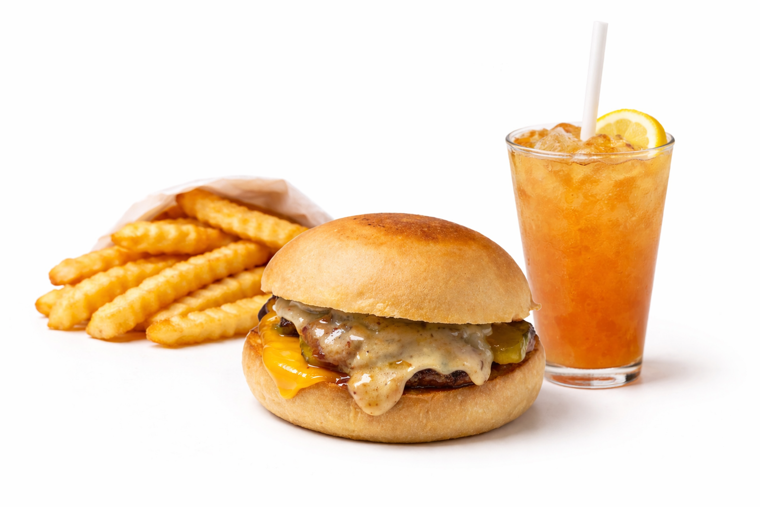 Fresh coco bread stacked with seasoned ground beef, melted cheddar, pickles, and sautéed onions — drizzled with our signature TA TO OG sauce and TA TO BBQ