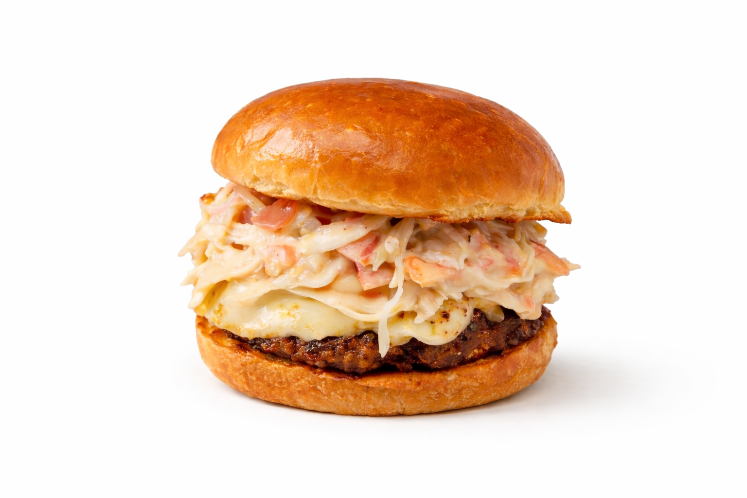 Served on a golden toasted potato bun with fresh seasoned ground beef, melted fried cheese, and our signature TA TO slaw.